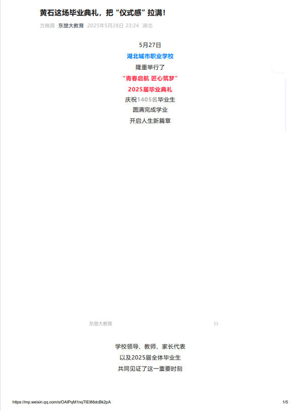 东楚大教育:黄石这场毕业典礼,把 “仪式感” 拉满!
