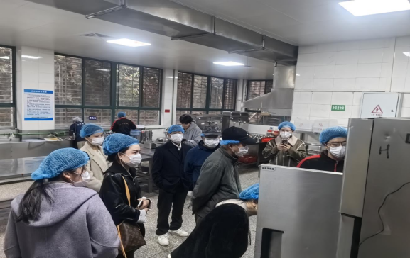 参观团实地查看了“明厨亮灶”AI系统、食材储存、烹饪操作、餐具消毒等关键区域,仔细检查了食材采购台账、供应商资质及卫生管理细节。规范的流程、整洁的环境和专业的设备获得了大家的一致认可。