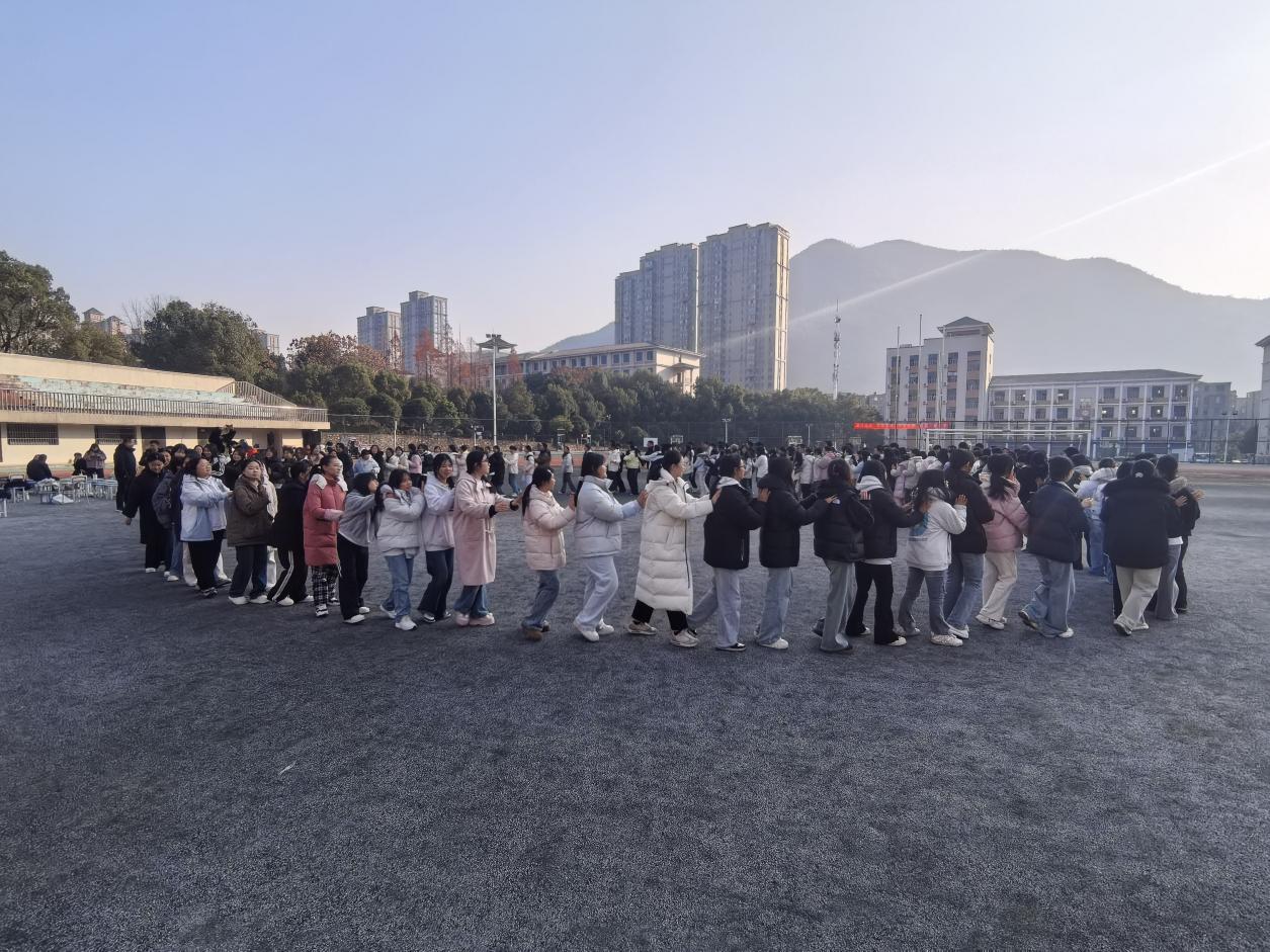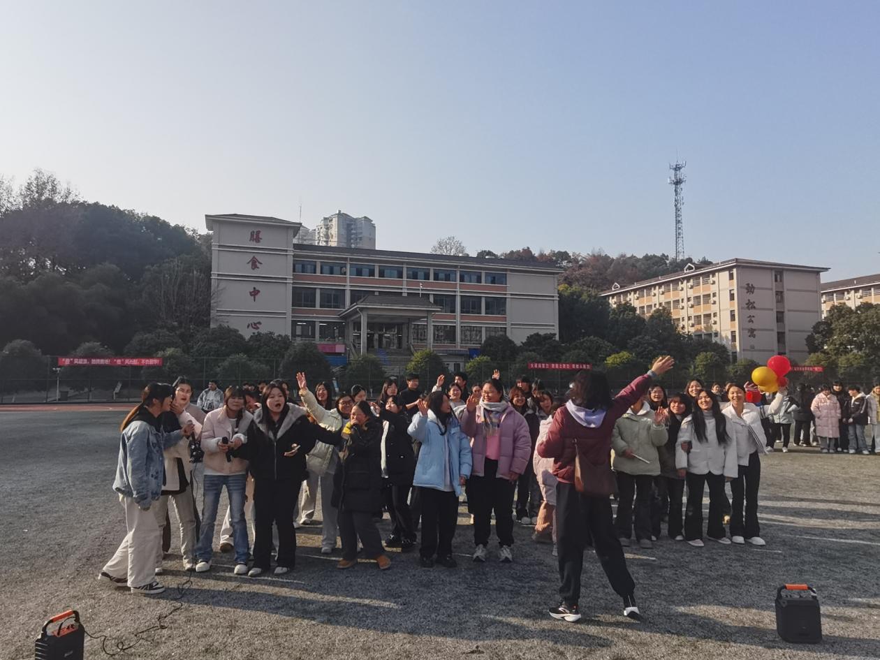 2025年12月27日下午,我校运动场上欢声笑语不绝于耳,三年级实验班“凝聚青春力量,冲刺梦想征程”主题团建活动在这里成功举行,为紧张备考的学子们带来了一场难忘的减压体验。下午2点30分,活动在热烈的气氛中拉开帷幕。各班级在师生精心设计下精彩登场,同学们站在运动场中央依次展示队名、队歌,每一个定格的瞬间,都充满了力量与希望,展现了大家对未来的美好憧憬和必胜信念。稍后,全体学生围成同心圆,配合主持人完成规定互动动作,师生间的默契配合迅速点燃全场气氛。欢乐的氛围中,三年级学子们暂别书山题海,在集体活动中汲取前行的力量。“抢零食大战”将活动推向高潮,同学们在主持人的指令下踊跃参与、奋勇争先,活动现场掌声、笑声此起彼伏,成为冬日校园里一道亮丽的风景线。